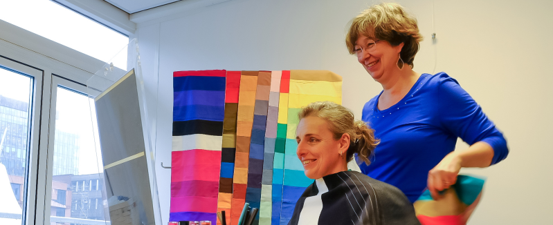 De methode die ik gebruik gaat uit van 12 kleurtypen: de vier seizoenen (lente, zomer, herfst en winter), die elk weer onderverdeeld zijn in drie subtypen. De kleurtypen hebben allemaal een ander kleurenpalet: de kleuren die het beste staan. Om je kleurtype te bepalen, vergelijken we voor de spiegel lappen en ‘kragen’ met verschillende kleuren en stoffen met elkaar om erachter te komen met welke kleuren jij het beste uit de verf komt. Doordat je meekijkt, zul je zelf ook zien welke kleuren jou het beste staan en zul je ook begrijpen waarom. Verder krijg je inzicht in wat voor stoffen het beste bij je passen: effen, gemêleerd of met print, met of zonder contrast, etc… Het kleurenboekje dat je na afloop meekrijgt, bevat alleen de kleuren die passen bij het betreffende kleurtype. Je krijgt dus geen kleuren mee die minder (of helemaal niet) geschikt zijn.